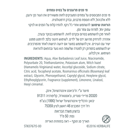 מי פנים מרעננים על בסיס צמחים - לעור פנים מלא חיים